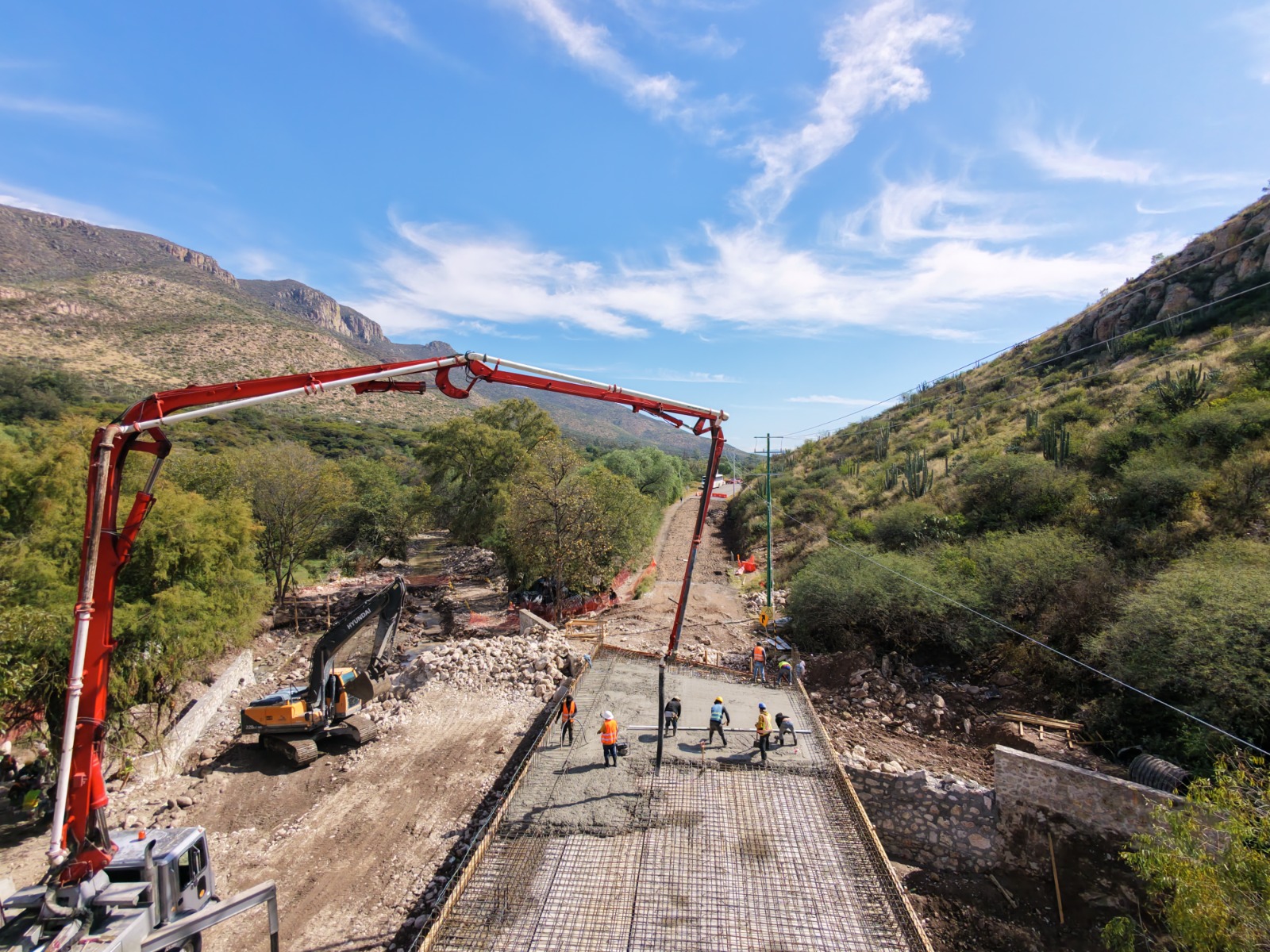 Construcción de puente vehicular para sustituir el anterior dañado por fuertes precipitaciones.
